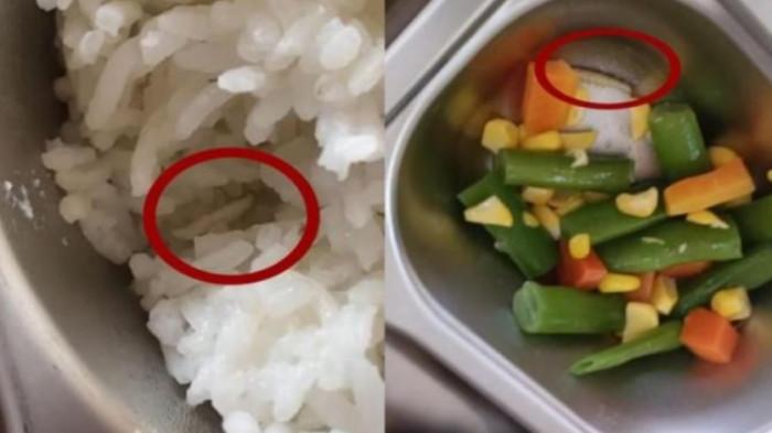 Saat diperiksa guru, ternyata dalam lauk sayur terdapat beberapa ulat kecil yang masih hidup.